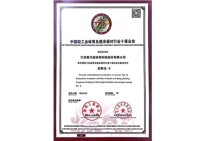 中国轻工业体育及健身器材行业十强企业